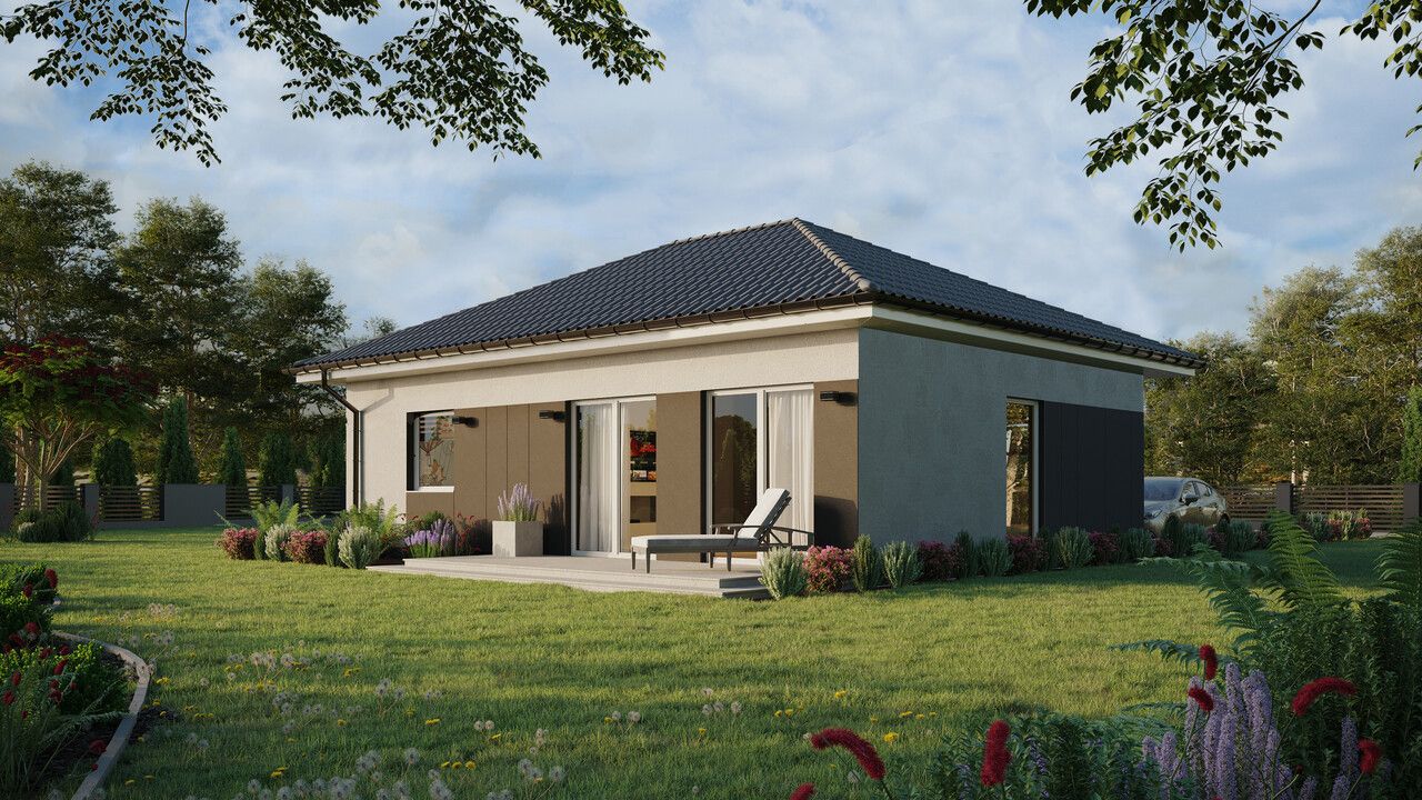 Das Haus ERDOL 1 XL ist eine erweiterte Version des Hauses ERDOL 1. Das Haus mit einer Fläche von 74 m² (116 m² in der Version mit nutzbarem Dachgeschoss) bietet seinen Bewohnern einen komfortablen Raum, in dem alles, was sie brauchen, ist. Seine geringe Größe macht es einfach und kostengünstig in der Instandhaltung. Für den Bau wird KVH-Holz verwendet, das die Grundlage der gesamten Struktur bildet. Dank energiesparender Lösungen Planung verhindert es Energieverluste und ist umweltfreundlich.