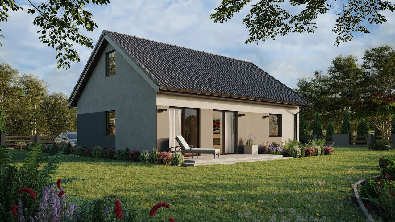Das Haus ERDOL 1 XL ist eine erweiterte Version des Hauses ERDOL 1. Das Haus mit einer Fläche von 74 m² (116 m² in der Version mit nutzbarem Dachgeschoss) bietet seinen Bewohnern einen komfortablen Raum, in dem alles, was sie brauchen, ist. Seine geringe Größe macht es einfach und kostengünstig in der Instandhaltung. Für den Bau wird KVH-Holz verwendet, das die Grundlage der gesamten Struktur bildet. Dank energiesparender Lösungen Planung verhindert es Energieverluste und ist umweltfreundlich.
