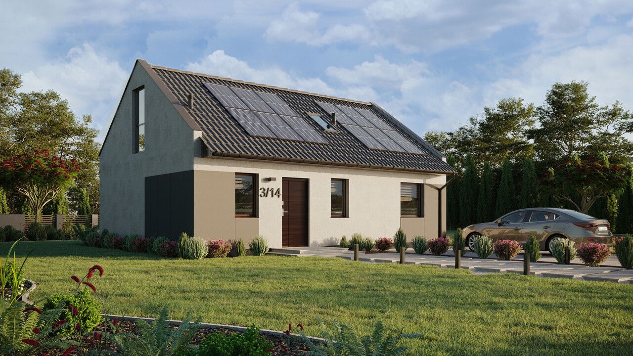 Das Haus ERDOL 1 XL ist eine erweiterte Version des Hauses ERDOL 1. Das Haus mit einer Fläche von 74 m² (116 m² in der Version mit nutzbarem Dachgeschoss) bietet seinen Bewohnern einen komfortablen Raum, in dem alles, was sie brauchen, ist. Seine geringe Größe macht es einfach und kostengünstig in der Instandhaltung. Für den Bau wird KVH-Holz verwendet, das die Grundlage der gesamten Struktur bildet. Dank energiesparender Lösungen Planung verhindert es Energieverluste und ist umweltfreundlich.