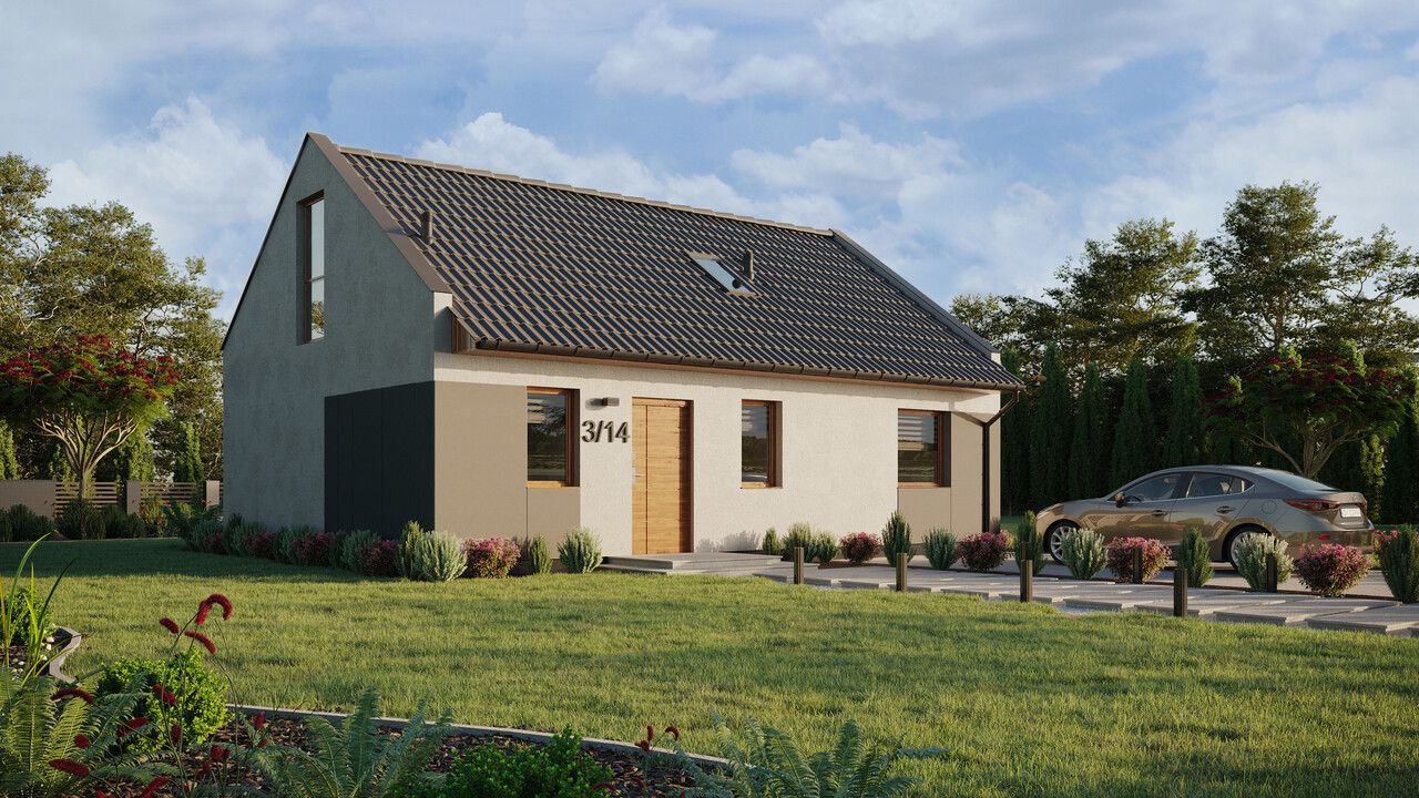 Das Haus ERDOL 1 XL ist eine erweiterte Version des Hauses ERDOL 1. Das Haus mit einer Fläche von 74 m² (116 m² in der Version mit nutzbarem Dachgeschoss) bietet seinen Bewohnern einen komfortablen Raum, in dem alles, was sie brauchen, ist. Seine geringe Größe macht es einfach und kostengünstig in der Instandhaltung. Für den Bau wird KVH-Holz verwendet, das die Grundlage der gesamten Struktur bildet. Dank energiesparender Lösungen Planung verhindert es Energieverluste und ist umweltfreundlich.
