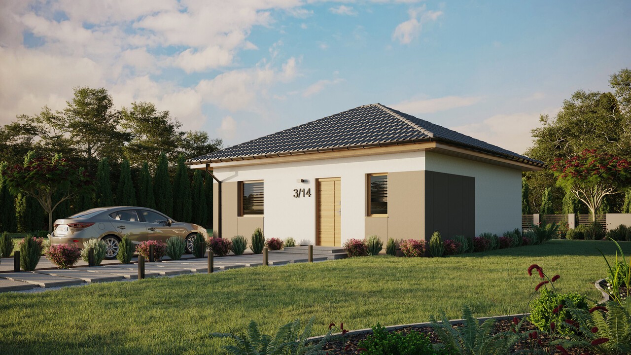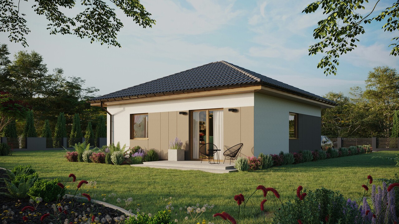 Das Haus ERDOL 1 mit einer Fläche von 59 m² (90 m² in der Version mit nutzbarem Dachgeschoss) bietet seinen Bewohnern einen komfortablen Raum, in dem alles, was sie brauchen, vorhanden ist. Seine geringe Größe macht es einfach und kostengünstig in der Instandhaltung, was uns in Verbindung mit den modernen und ökologischen Lösungen, die bei seiner Konstruktion verwendet wurden, die Klarheit gibt, dass dieses Haus im Einklang mit der Natur.
