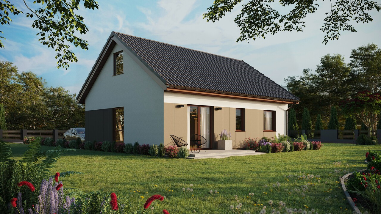 Das Haus ERDOL 2 mit einer Fläche von 68 m² (107 m² in der Version mit nutzbarem Dachgeschoss) wurde entworfen, um auf kompaktem Raum Komfort und alles zu bieten, was im täglichen Leben am wichtigsten ist. Modernste Technologien und ökologische Lösungen machen es zu einem energieeffizienten Haus, das im Einklang mit der Natur funktioniert. Für die Konstruktion wird KVH-Holz verwendet, das die Grundlage der gesamten Struktur bildet. Entsprechend ausgewählte Dämmstoffe sorgen dafür, dass das Haus vor Wärmeverlusten geschützt ist.