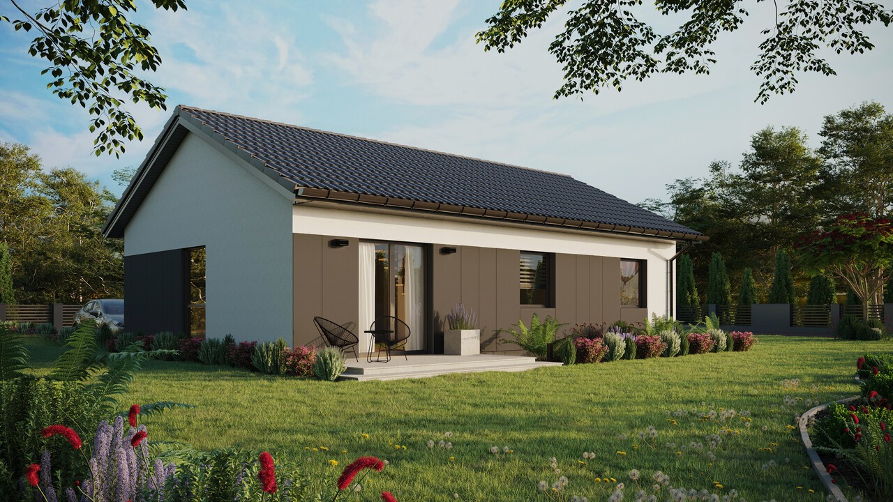 Das Projekt ERDOL 3 Haus mit einer Fläche von 82 m² (130 m² in der Version mit nutzbarem Dachgeschoss) wurde so konzipiert, dass das Gebäude seinen Bewohnern komfortable und geräumige Innenräume bietet, in denen alles Platz hat, was sie brauchen. Die eingesetzten modernen Technologien und ökologischen Lösungen machen es zu einem energieeffizienten Haus, das im Einklang mit der Natur funktioniert. Für den Bau wird KVH-Holz verwendet, das die Grundlage der gesamten Struktur bildet. Entsprechend ausgewählte Dämmstoffe sorgen dafür, dass das Haus vor Wärmeverlusten geschützt ist.